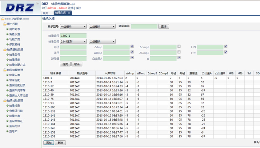 - 軸承組配管理:管理軸承組配的整個(gè)過(guò)程,包括軸承入庫,軸承組配,軸承出庫等
