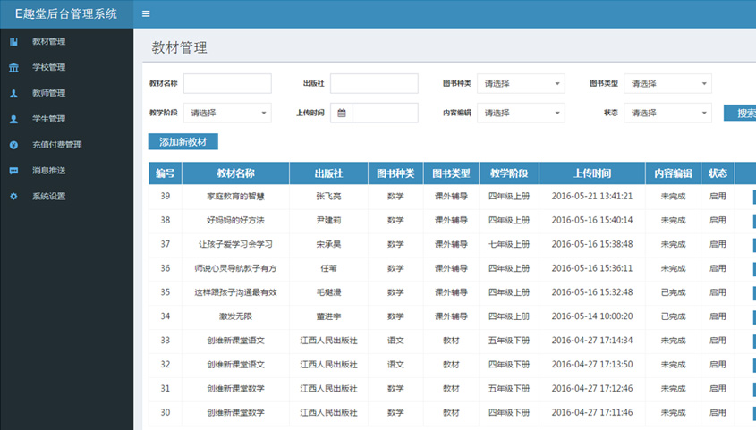 - 教材管理 管理平臺教材信息,采用圖片掃描、上傳、編輯對書(shū)本進(jìn)行錄入