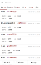 客戶(hù)信息審核:置業(yè)顧問(wèn)在微信端接收到推送過(guò)來(lái)的客戶(hù)數據,可根據設置的模式獲得客戶(hù)數據,也可進(jìn)行搶單,將客戶(hù)變?yōu)樽约旱母M(jìn)客戶(hù),進(jìn)行客戶(hù)信息的初步審核。